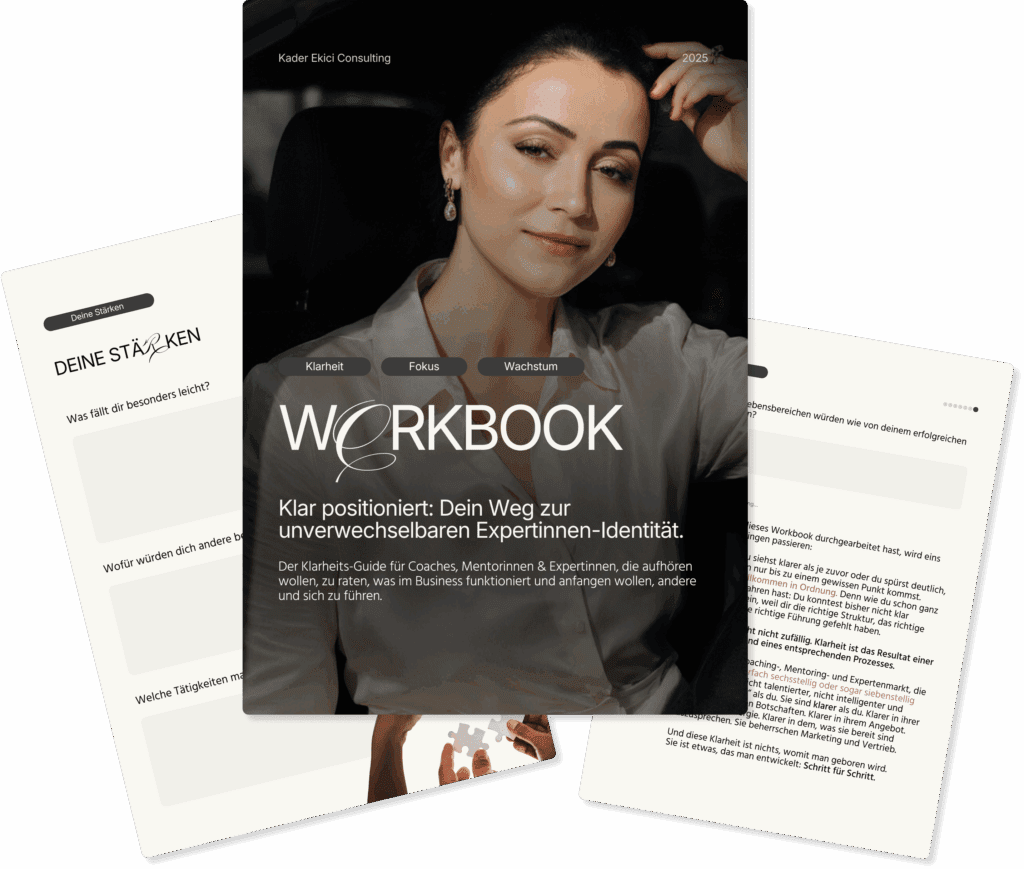 Mit dem Positionierungs-Kompass, einem hochwertigen und umfangreichen Workbook, bekommst du eine klare Struktur an die Hand, um herauszufinden: